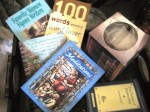 Darn, those stacks…how well can those tell on me? Oh, pretty well, especially if one’s looking at the dozen discs (music and movies). From Bryan Adams to Amy Grant, ABBA to ZZ Top… From “The Apartment” to “Last Holiday” to “Ziegfeld Girl”… Maybe it’s time to find the floor again…