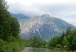 The ‘shawl of sunlight’ on the left side of the mountain could not be ignored on this typical gray day.