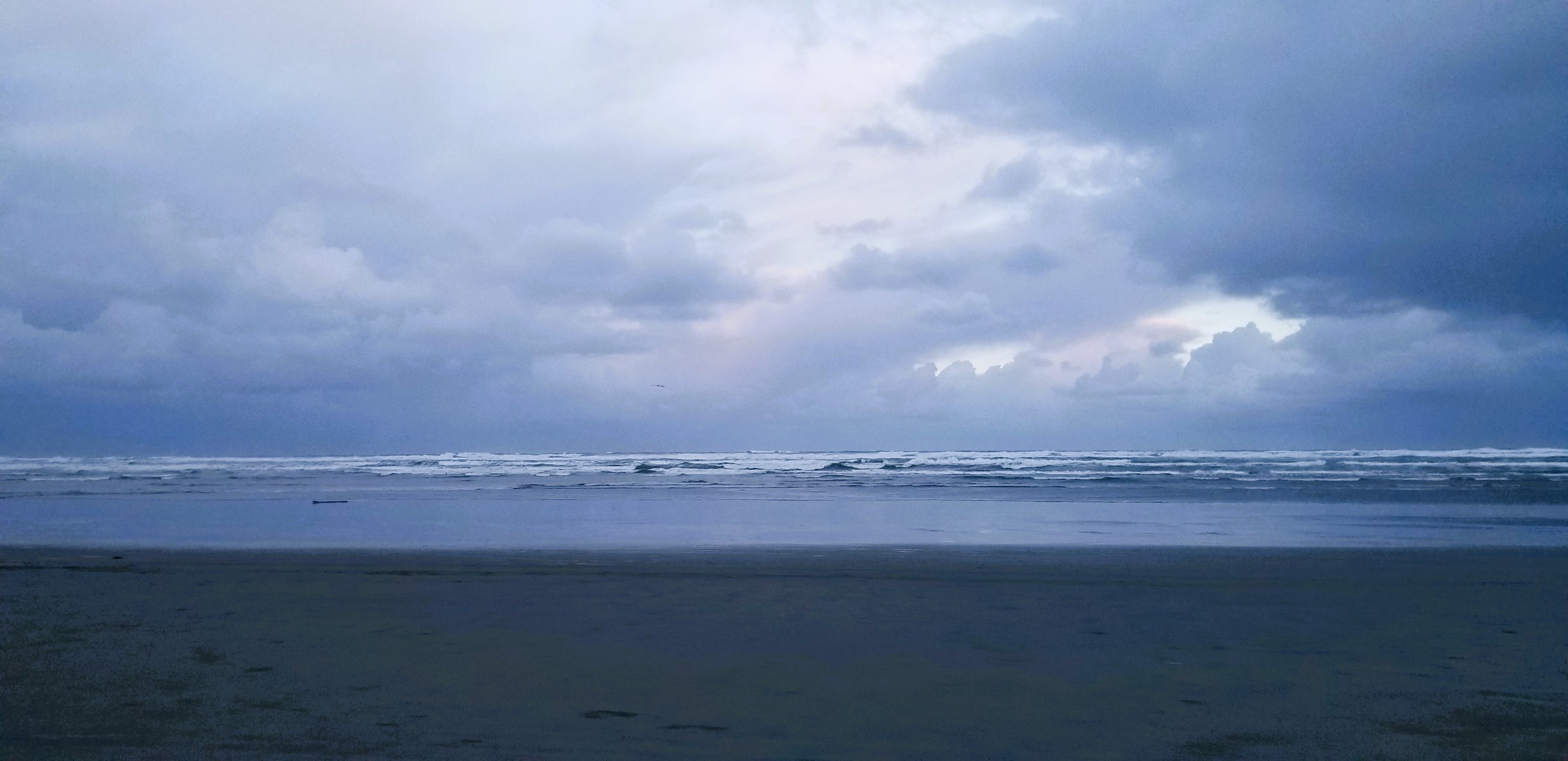 The Pacific Ocean under a cloudy sky as daylight tries to break through.